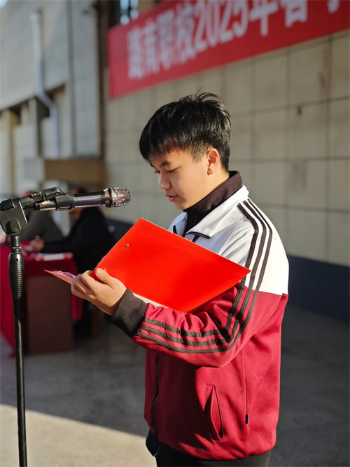 最后,边亮校长发表了振奋人心的致辞。边校长先是回顾了学校在过去一年取得的辉煌成就,无论是升学成绩的突破,还是技能竞赛的佳绩,都离不开全体师生的共同努力。接着,对同学们提出了新的要求和期望,鼓励大家树立远大志向,培养良好品德,掌握扎实专业技能,为未来的职业发展做好充分准备。边校长的话语如同一股暖流,又似一声激昂的号角,让全体师生对新学期充满信心与干劲。