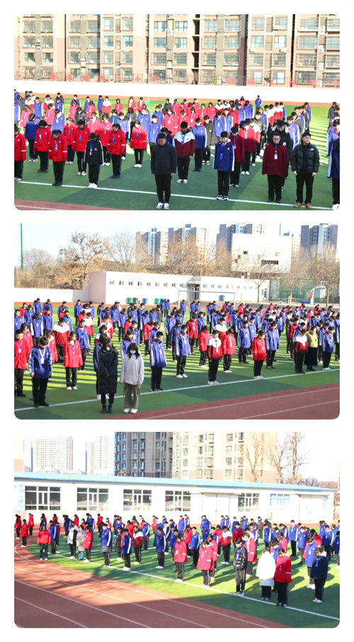 师生向在南京大屠杀中遇难的同胞默哀。回顾这一段历史,是为了表达对和平的向往,希望同学们勿忘历史,珍爱和平,努力成长为以德为先、能力为重、全面发展的社会主义合格建设者和可靠接班人。
