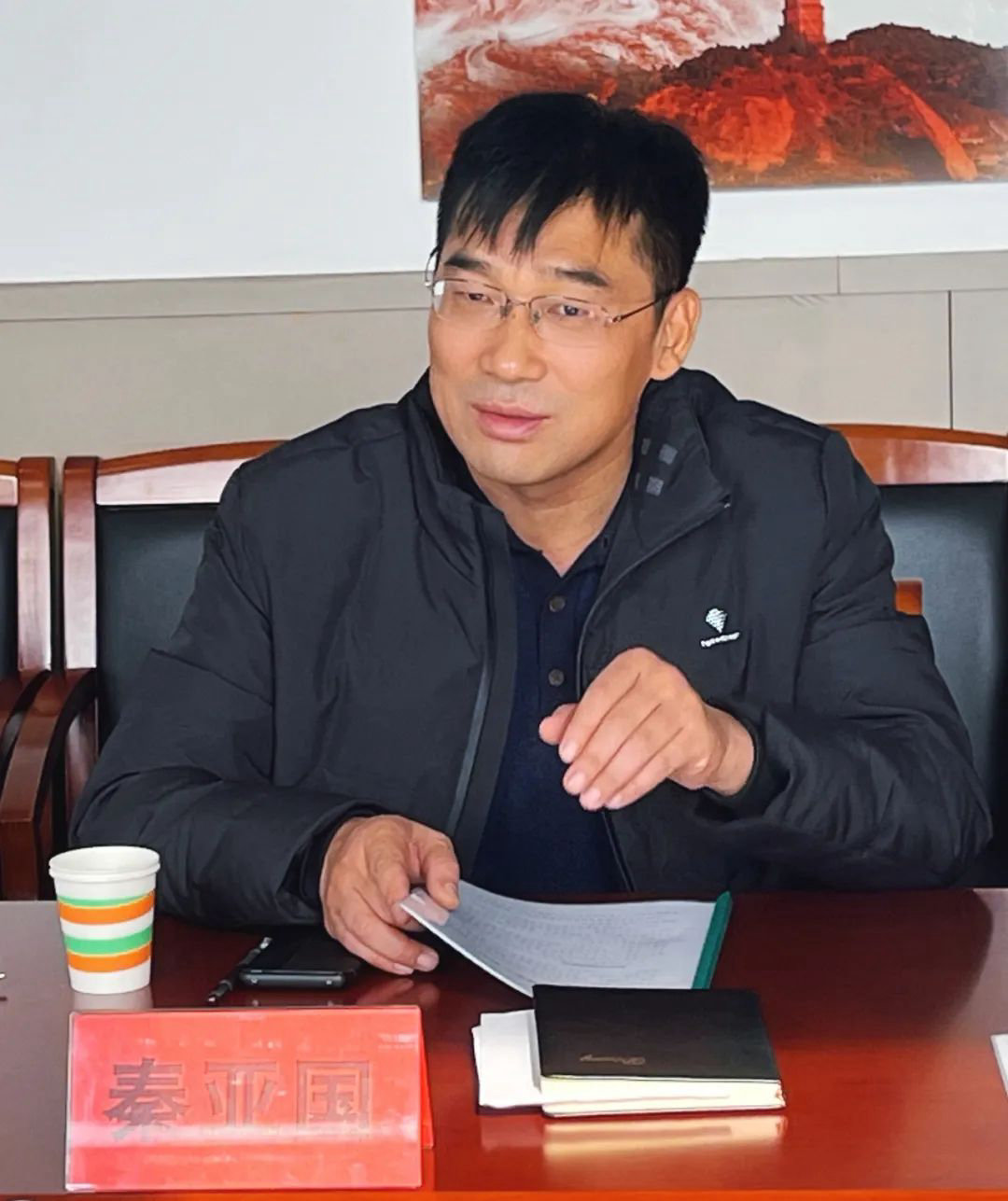 秦亚国书记对职校目前基本情况和发展规划向两位领导做了详细介绍。并就招生及河北省中等职业学校标准化验收工作面临的困难进行了详细的汇报。