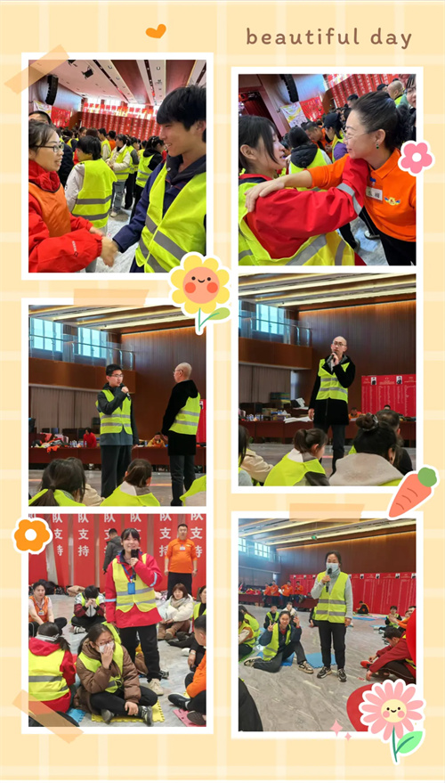 趣味游戏环节精彩纷呈,“听老师说”考验聆听力与专注力,同学们全神贯注迎接指令挑战;“打招呼”使陌生同学距离拉近,以问候和笑容搭建友谊桥梁;“呼啦圈”彰显团队协作魅力,手牵手传递呼啦圈凝聚默契;“拼图”是智慧与沟通的试炼,分工协作完成拼图见证团队力量;“二人对话”滋润情感世界,促进对家庭与师生关系的理解感恩;这些趣味游戏从多方面锻炼了同学们的能力,为活动增添了丰富色彩与活力。