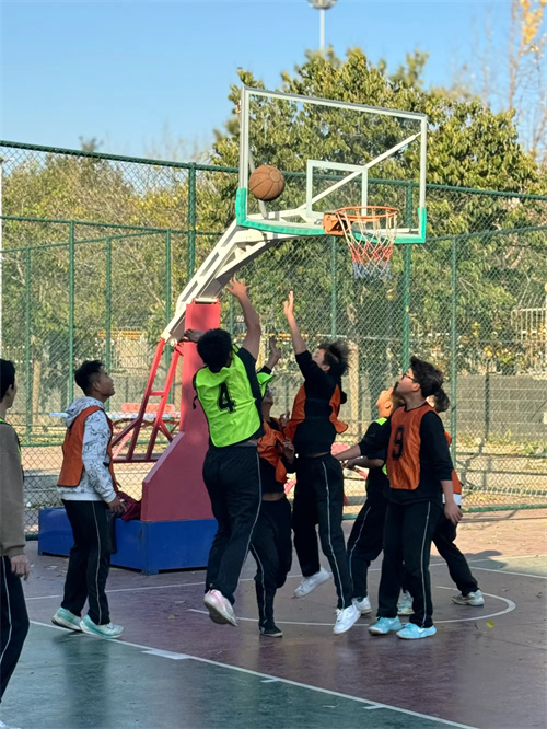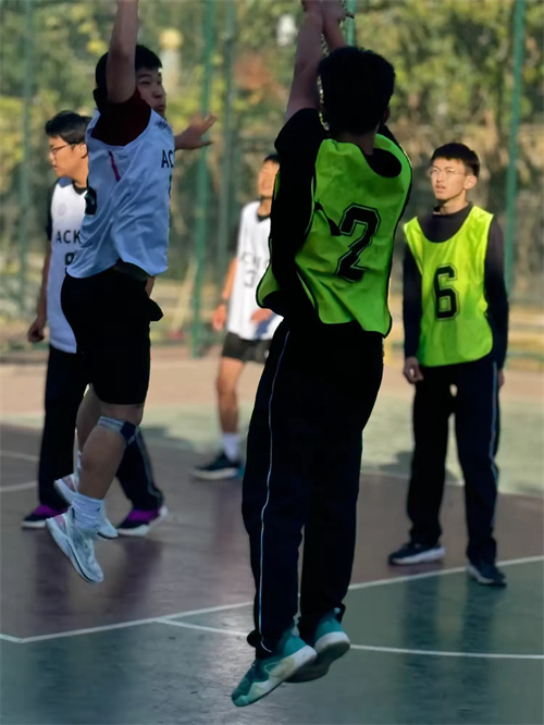 观众席上,同学们的热情同样高涨。他们挥舞着手中的加油棒,呐喊声此起彼伏,为场上的运动员们加油鼓劲。每当有精彩的表现出现,整个场馆都会爆发出雷鸣般的掌声和欢呼声。这种热烈的氛围不仅激励了场上球员,也让每一位到场的观众感受到了篮球的魅力。