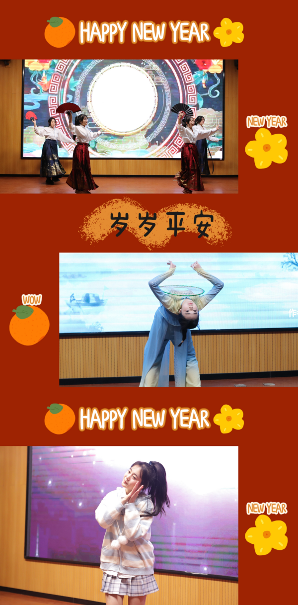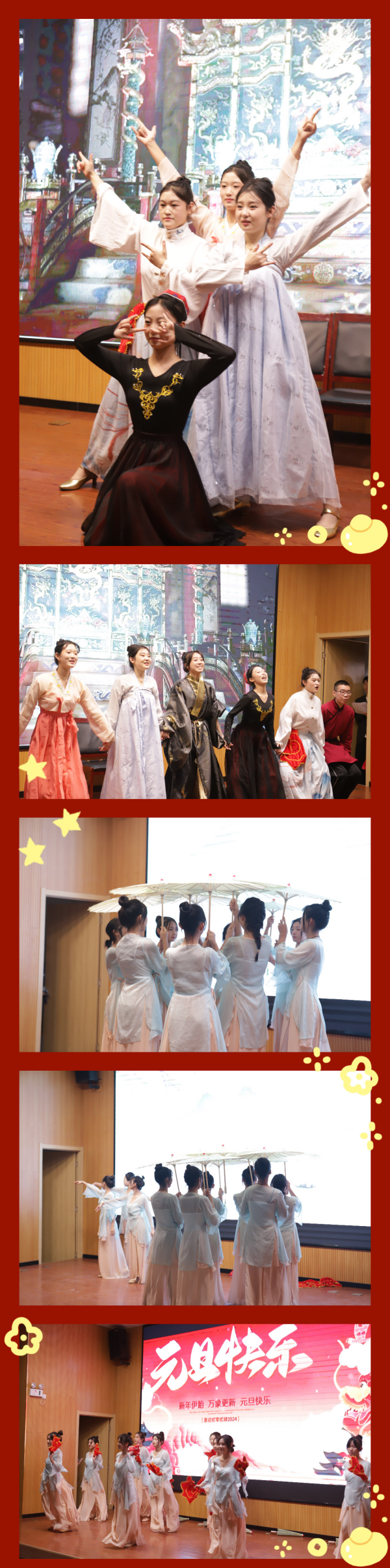 元旦联欢会节目异彩纷呈,在主持人热情洋溢的主持解说下,一支支欢快的舞蹈跳出激情,舞出精彩;一首首动听的音乐传递辞旧迎新的内心喜悦;一句句朗诵表达对新一年的期待与祝福,滋润我们的心灵。精彩纷呈的节目或浪漫温馨、或轻快悠扬、或活泼动感.......整个活动激情澎湃、掌声连连、笑声不断。