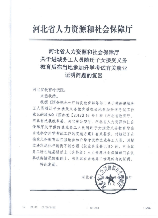 3.就业创业证(就业失业证)。审查绿色纸质证书或电子证(有其一即可)。如监护人超过法定退休年龄无法开具就业创业证,须到当地人社部门(或服务中心)开具务工情况有关证明(见附件)。